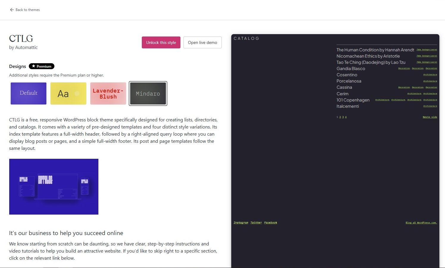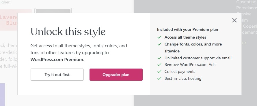 But if we click the black, the pink button says ‘unlock style’, and I wonder what that means… so I clicked it, it’s a free theme right?