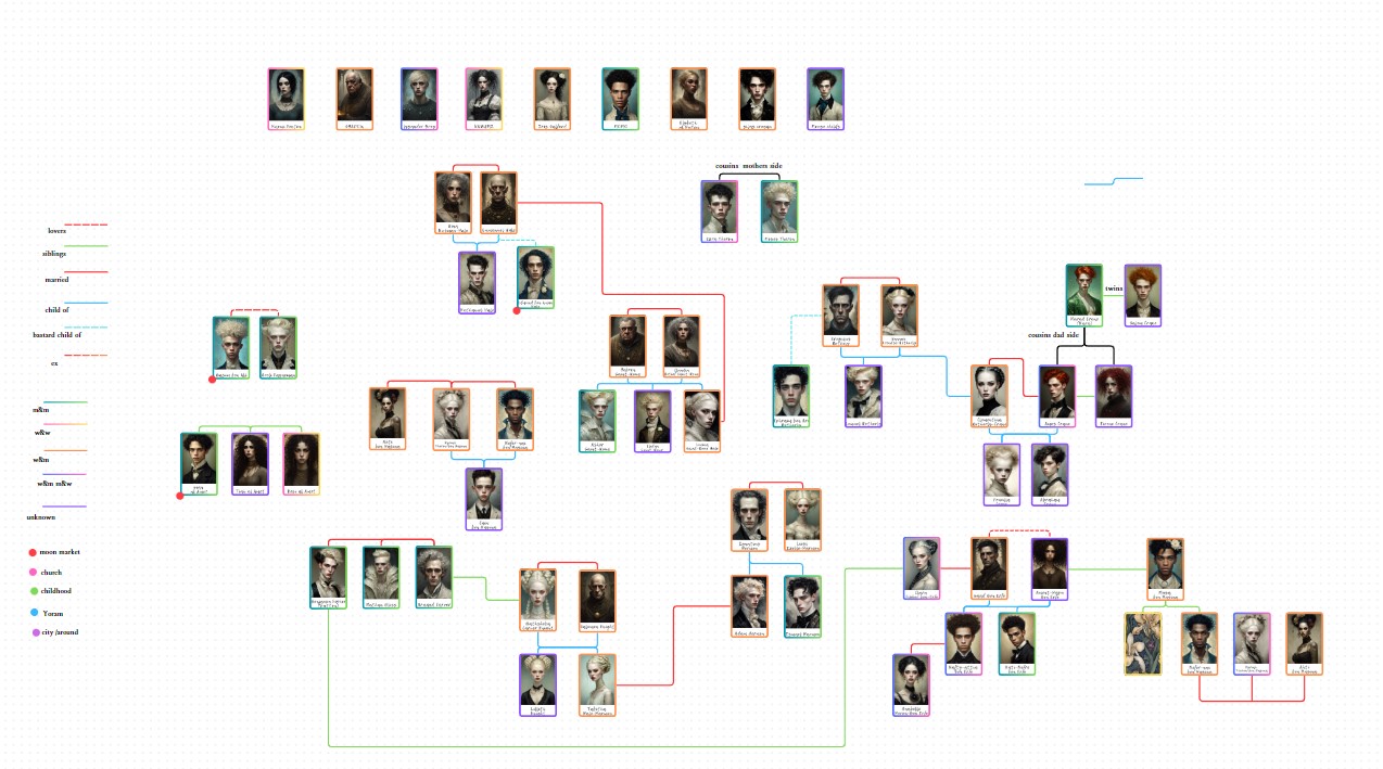 Here I have a connecting characters whiteboard. which I use all the time when I work on larger projects.