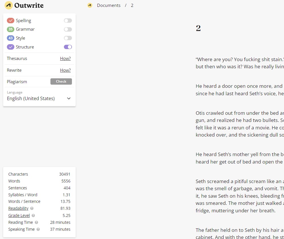The first I wanted to talk about is Outwrite, I might have mentioned this before, I don’t remember. But outwrite is a AI driven program that works with both Word and Google docs (and probably also with mac programs), there is a free version, and a paid version. I use the paid version because it gives me what I need. https://www.outwrite.com/