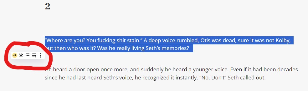 What I circled is the other edit option, this is at their site so it’s right there, but if you use the addon, you will see it in the side window. The pen option will give you options of how to structure the sentence differently, the next that looks like two lines will shorten your paragrap, and the last with four lines will fill words in there and make your paragraph longer. And it will suggest you a couple of options and you can click it to use the suggestion, or ignore the suggestions.