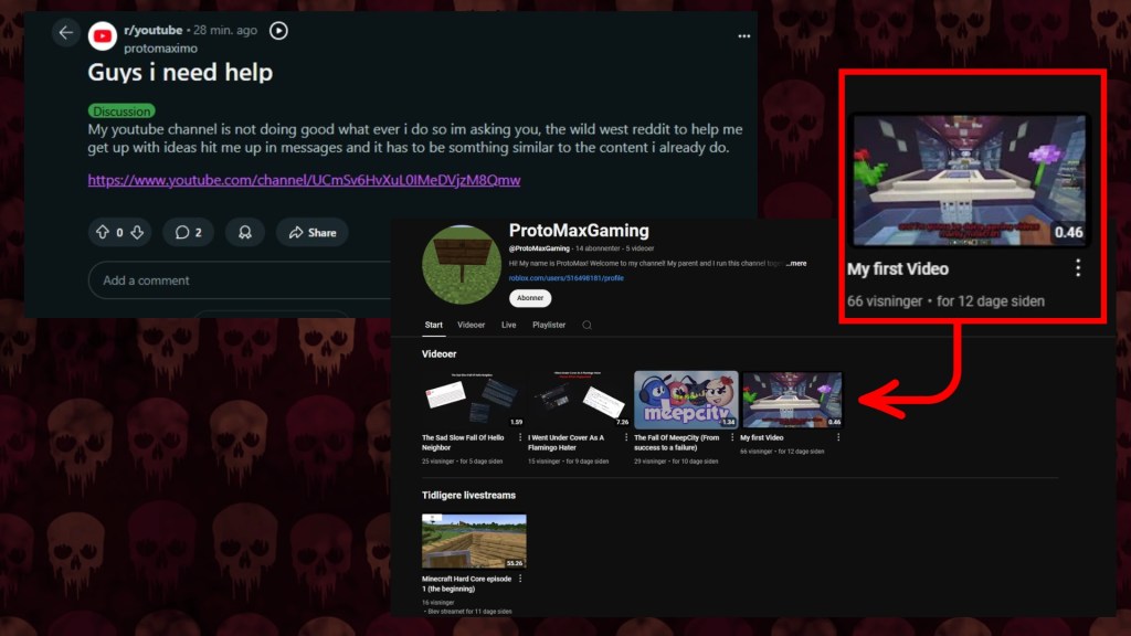 ‘The content I already do’ – omg… look at this, he has 4 videos and a stream – and his first video is 12 days old, and lasts under a minute – just what did he expect !?