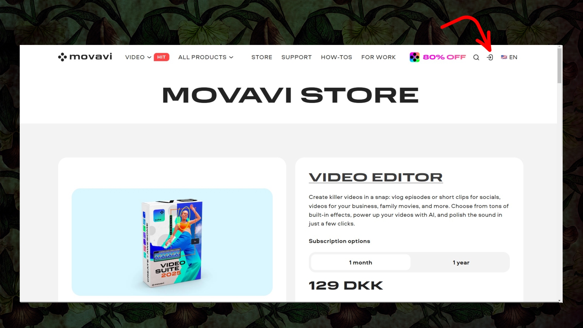 So I’m not going to bore you too much. But when you go to Movavi.com it’s not exactly easy to figure out where the hell you log in… but yeah that little weird icon is where you log in – the page however really, really want to sell you all kinds of shit.