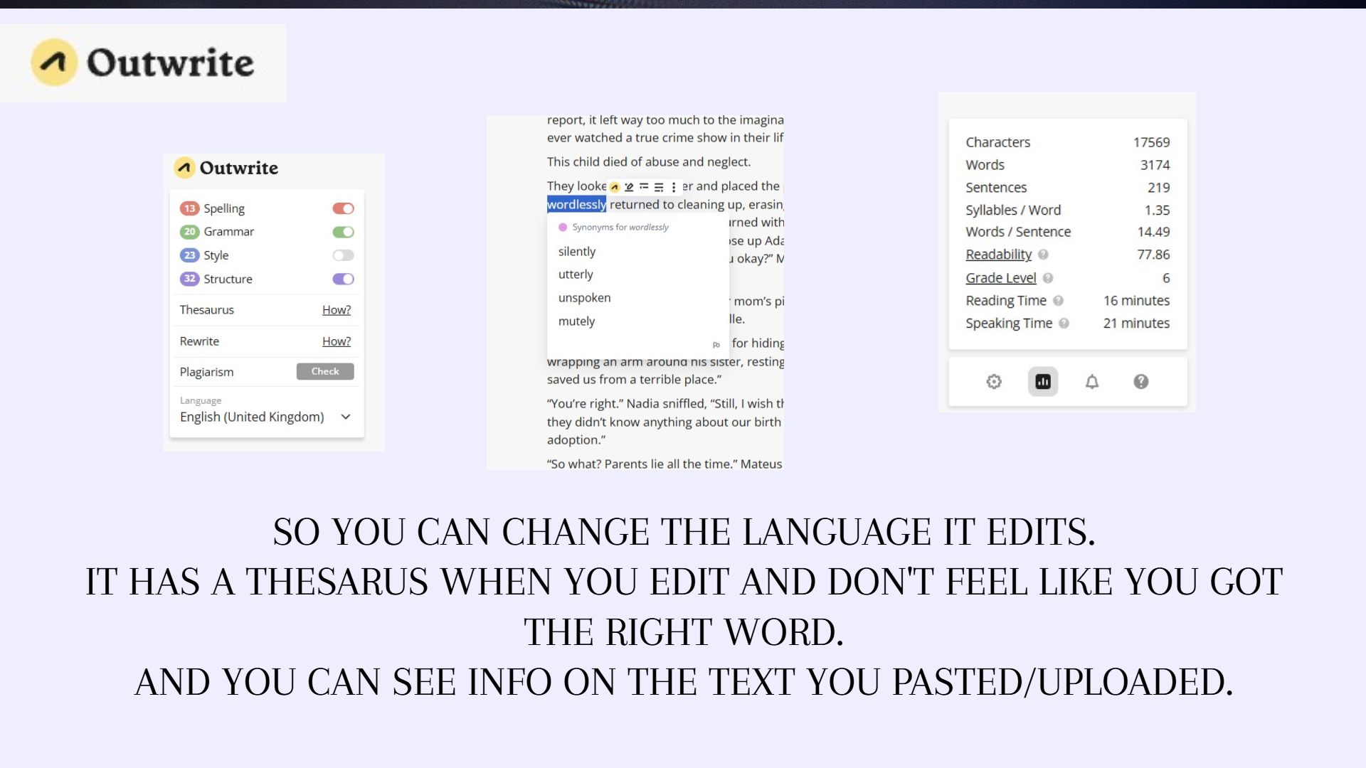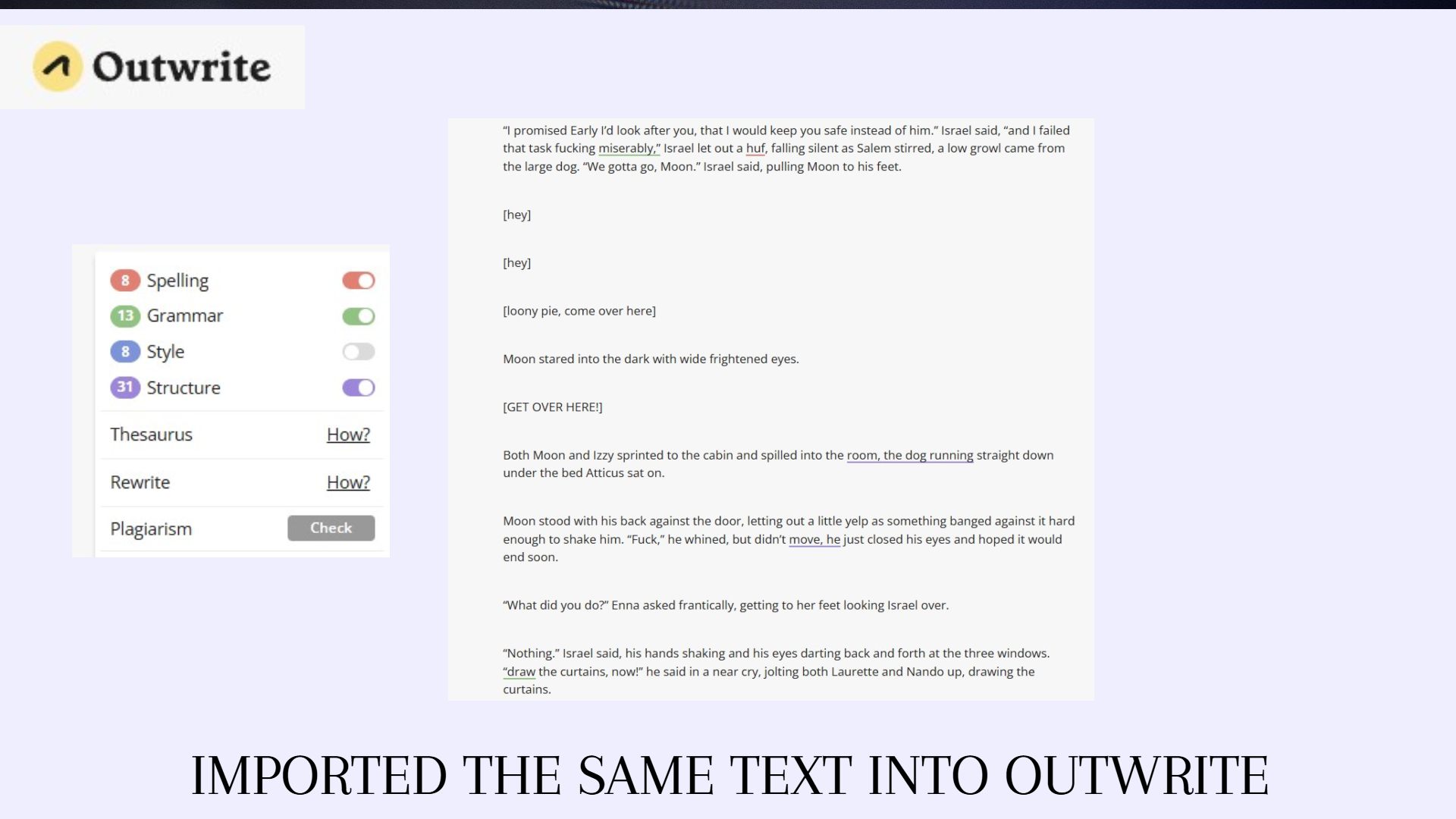 And so I decided to make this post about what I personally do, and the program I use which is Outwrite, it’s also AI driven, but it’s an editing tool, not an AI writer. And you can get this as an addon for most text programs too.