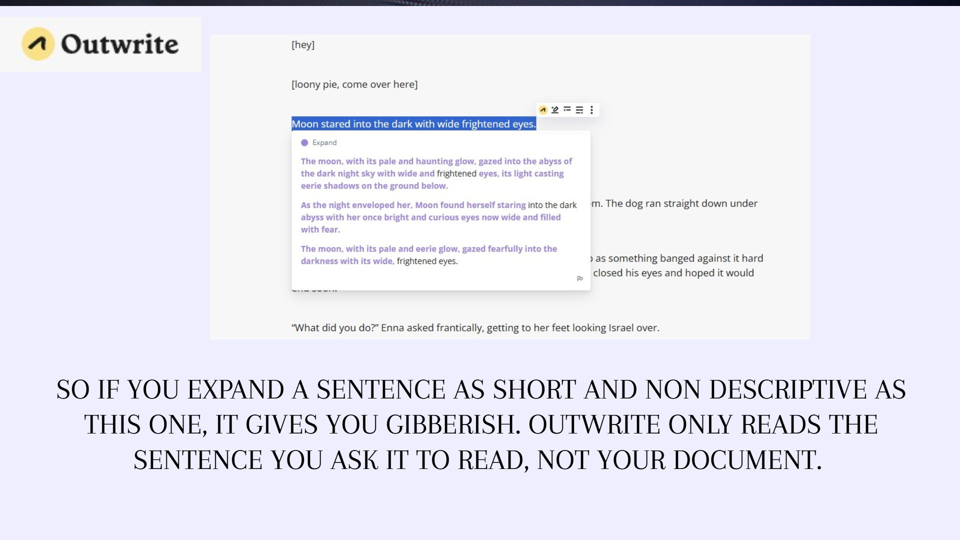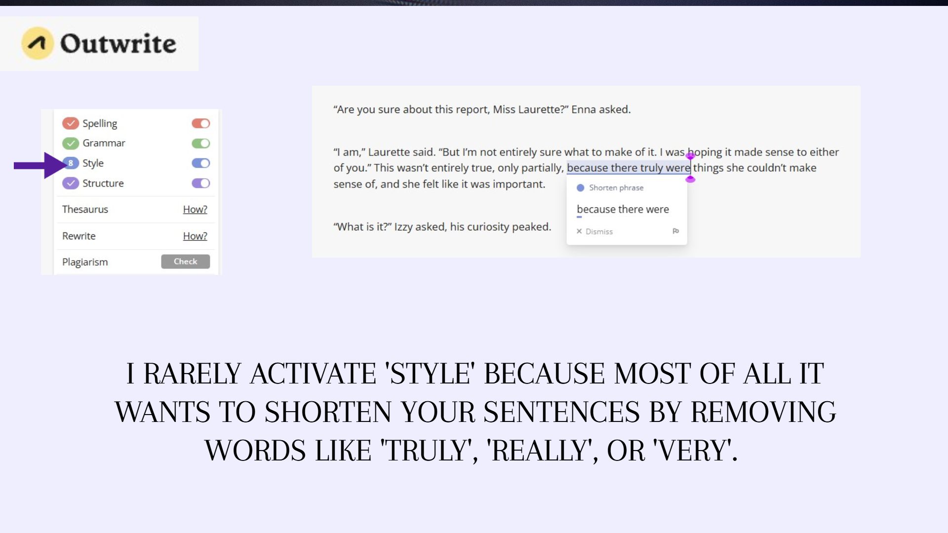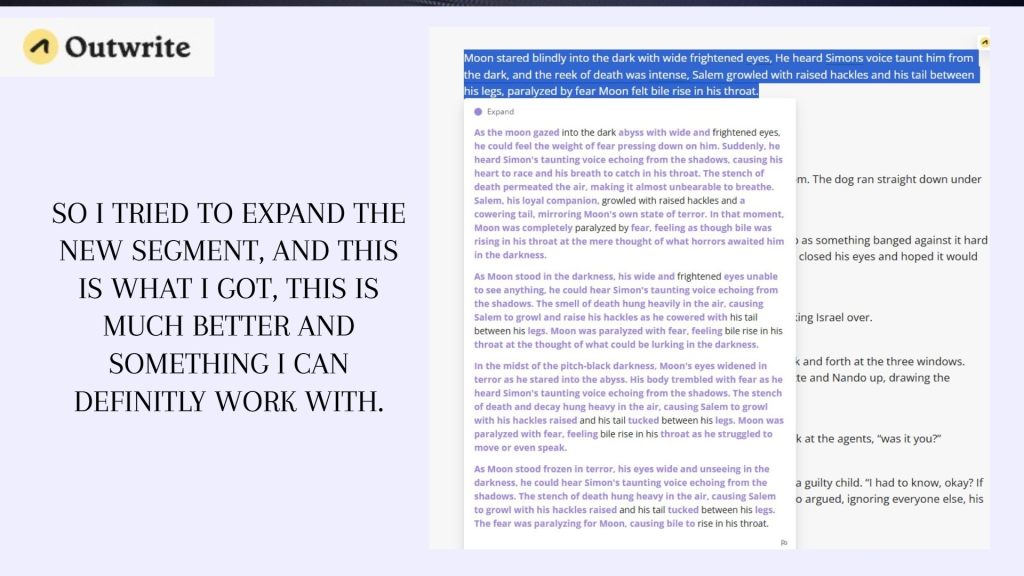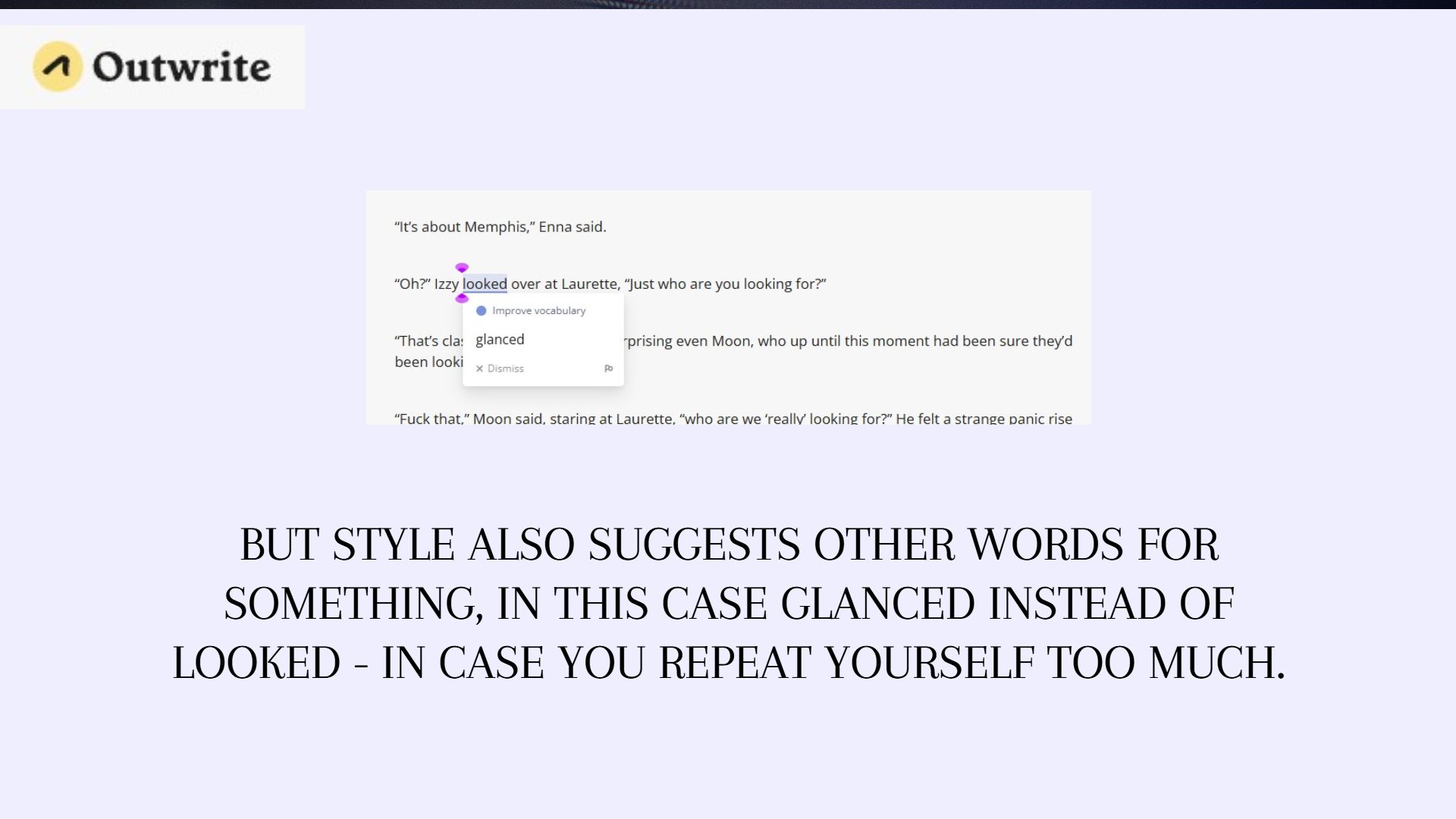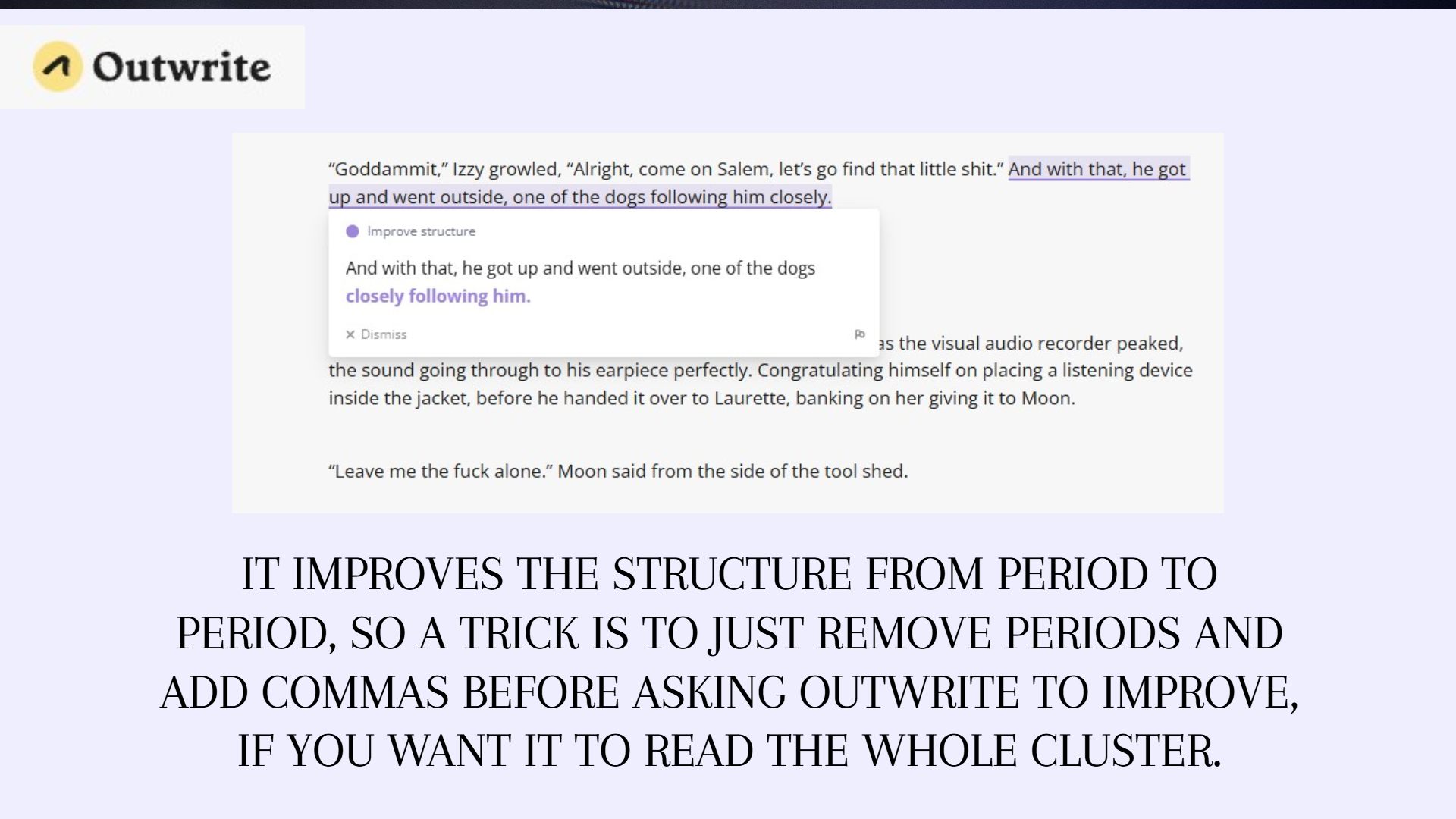All in all, I love Outwrite because it helps me with what I need. I need a way to fix bad syntax, and suggestions to structure and words – not an algorithm to write shit for me.