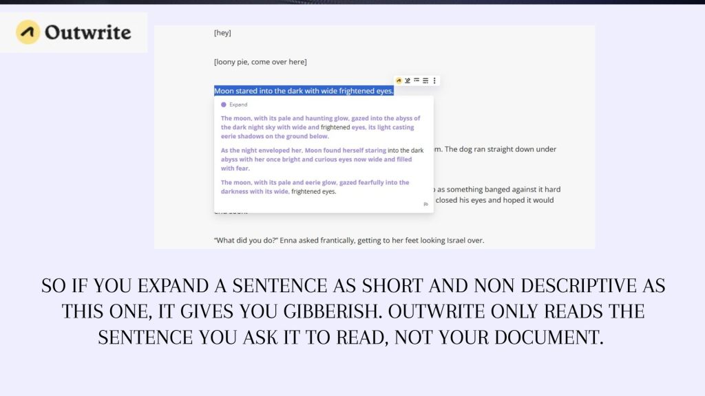 Now the suggestions given by Sudowrite was flat out unsuable, so I undid it, and tried something else.