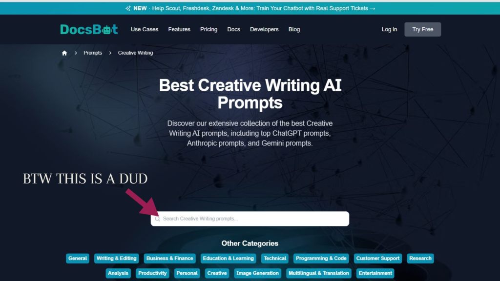 The moment you enter something into that prompt there, you can’t click anything, delete it, and you can click. So that prompt is a dud, but also not really what I wanted. So I scrolled down the page.