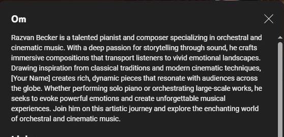 Do you recognize the thesaurus speek? and also who talks about themselves in third person? And no one in their right mind would claim they ‘crafts immersive compositions that transport listeners to vivid emotional landscapes’ – bro… you have 500 subs… I don’t know how well you resonate across the globe.