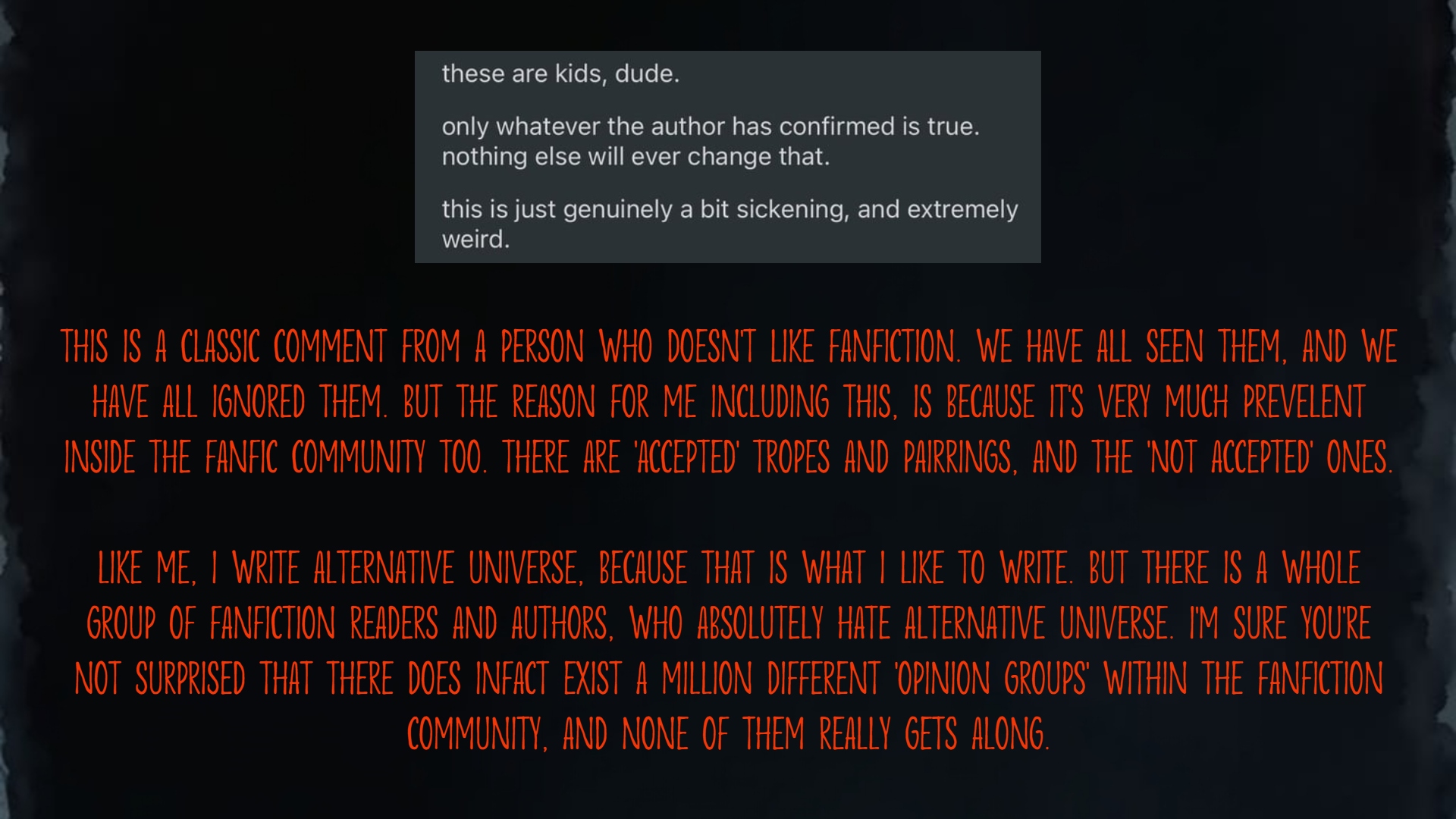 Also the ‘kids’ comment, is referring to this being a comment on a HP fanfic.