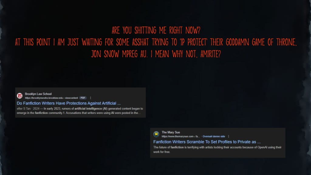 Do you see this? We are living in a time where fanfiction authors want to protect their works from ai scraping and copying? what?