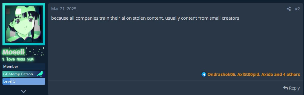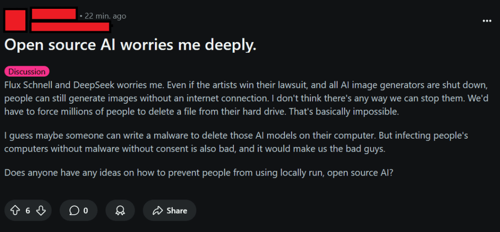 The ‘Factually wrong anti‘ are the ones that will make comments like ‘it’s because of people like you the Amazonas is dying’ (or the C02 argument). Or they will say ‘I hope you like it when people starve because of you’ (the loss of jobs argument). Or like in this case, ‘you help companies steal from small creators’. None of this is true, but you just can’t get through to these people, they believe their urban legends. And a little upvote farming doesn’t help either amirite?