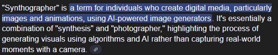 And by definition it would apply to all who make ai, but you see I don’t think so. Just like photographers are not done with their work just because they took a photo, they need to develop it too. Syntographers in my opinion take what the ‘camera’ gave them and curates it.