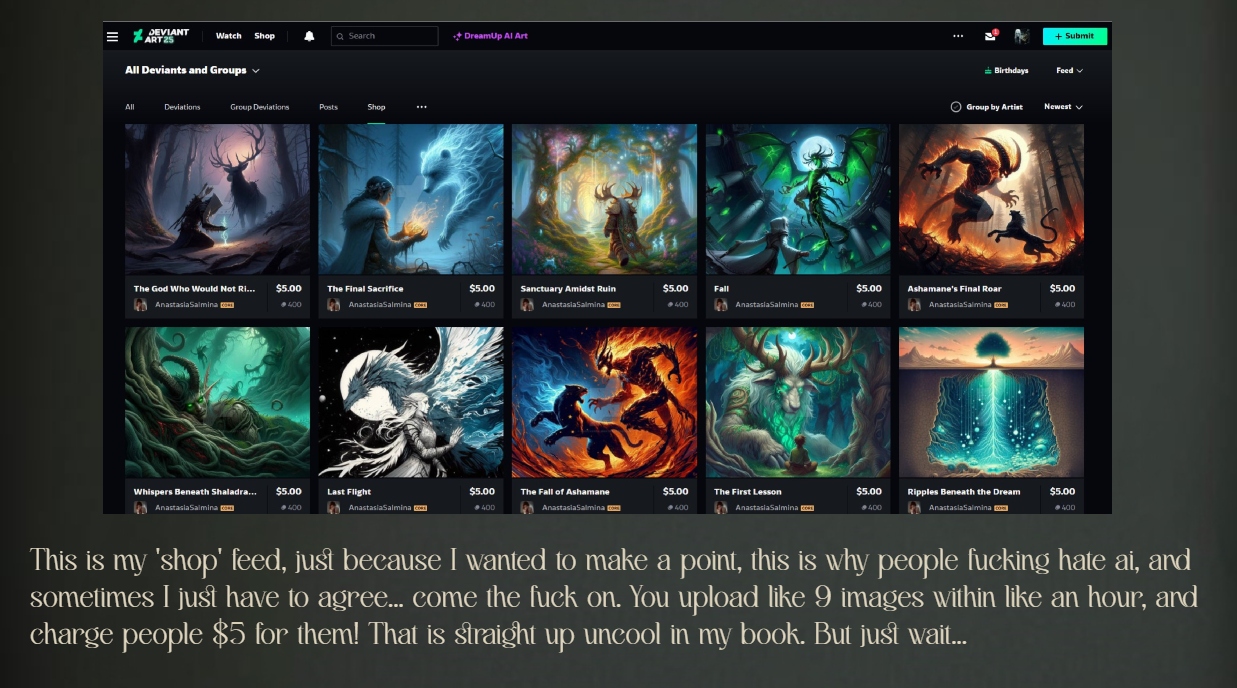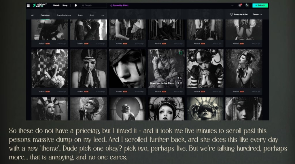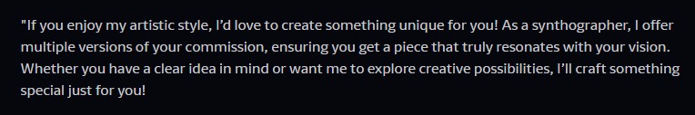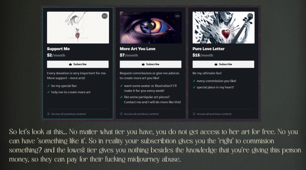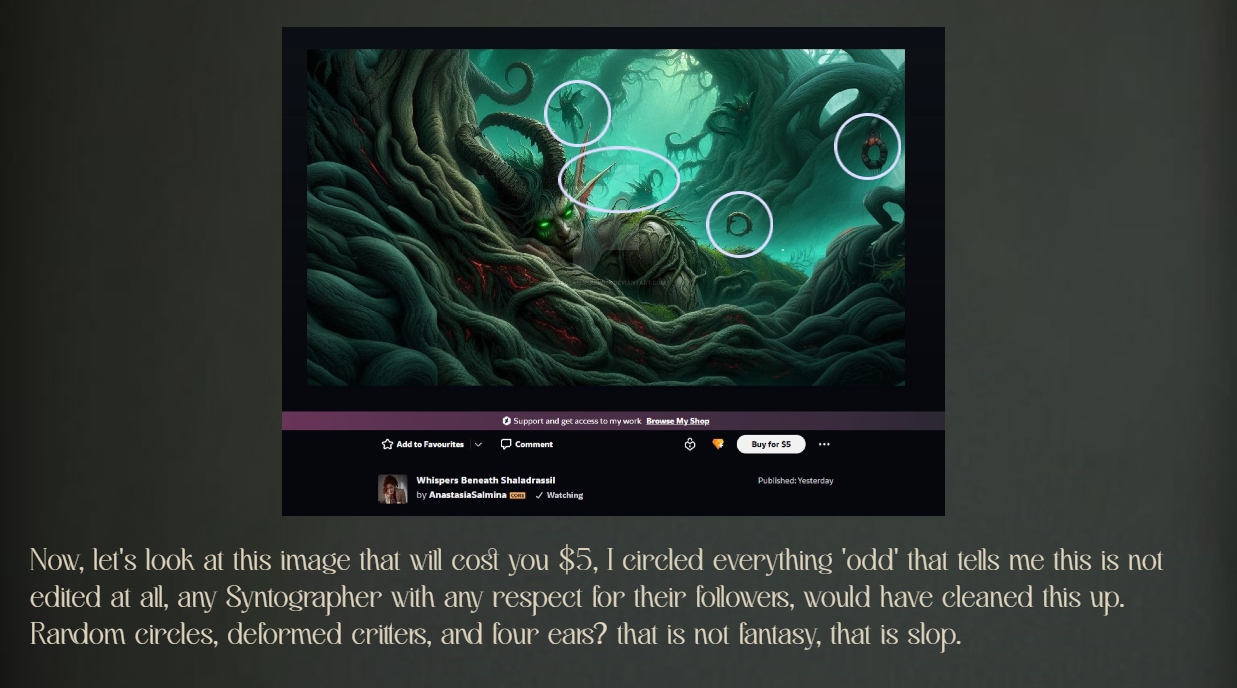 These are both just examples, just like the first creator, on why most ai creators are actually slightly problematic, and why I think there is a HUGE difference between being a Syntographer, and ai creator.