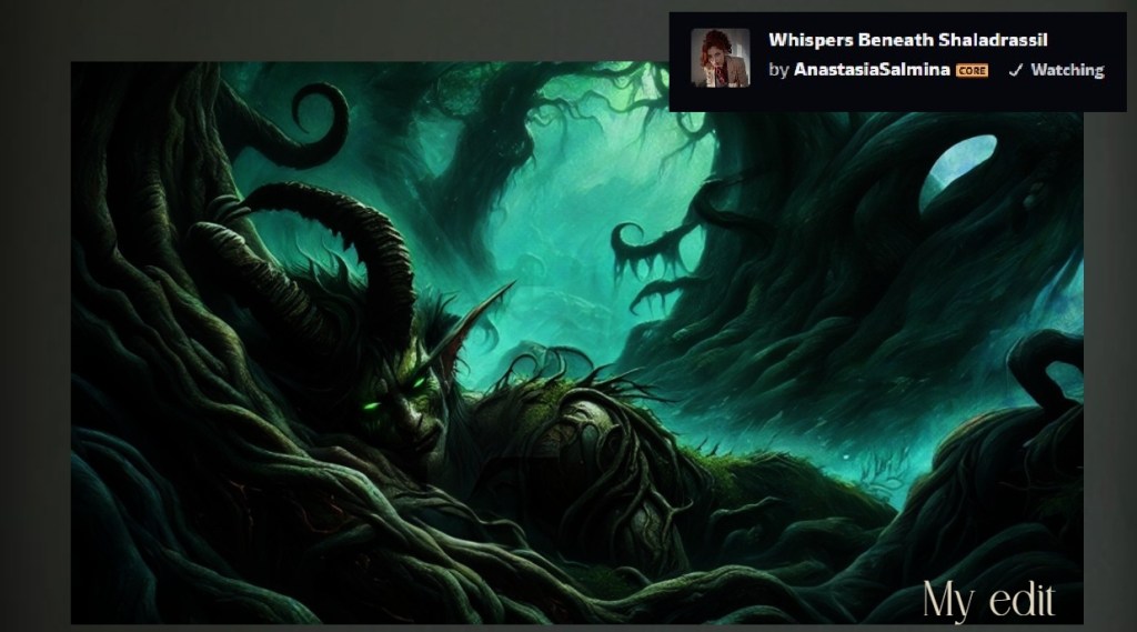 This entry was made to not just point out that even if I like ai artforms, I don’t exactly agree with how everyone is doing it, and I have to say I hate being bundled up with these people. What I make is nothing like what they make, also I’d never in my fucking life ask for money for it. I mean sure on Redbubble, but you don’t buy my damn png file, you buy a mug, or a tshirt… which happens to have my print on it.