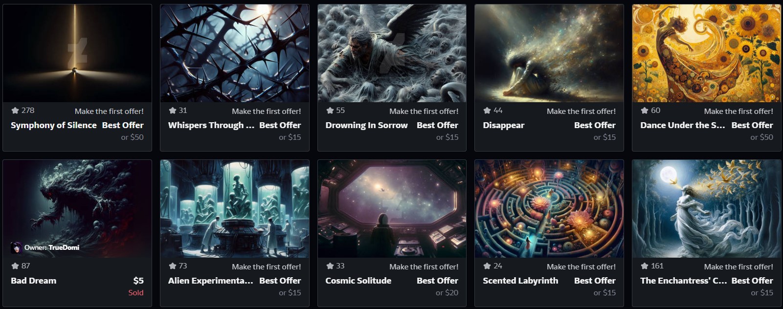 and this is what we find…. Fucking $50, yeah you read right… that is insane, literally insane. And I don’t understand if it’s her members who bought something off her and is reselling the NFTs or if it’s all her own which were suggested by her members, and they are $15 to $50? I mean is this the creator selling them, or the members selling them? I am so confused.
