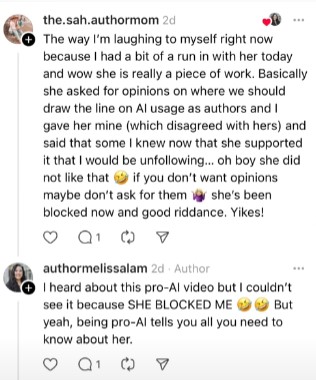 This is a comment on her threads, and the debate was never about ai books. It was about the ‘limits of use of genAI for authors’. And I did include this tosser for the sole reason to show you, the ‘some ai = all ai’ is apparently still a thing. I honestly thought we’d moved past it, seriously I did… but apparently not.