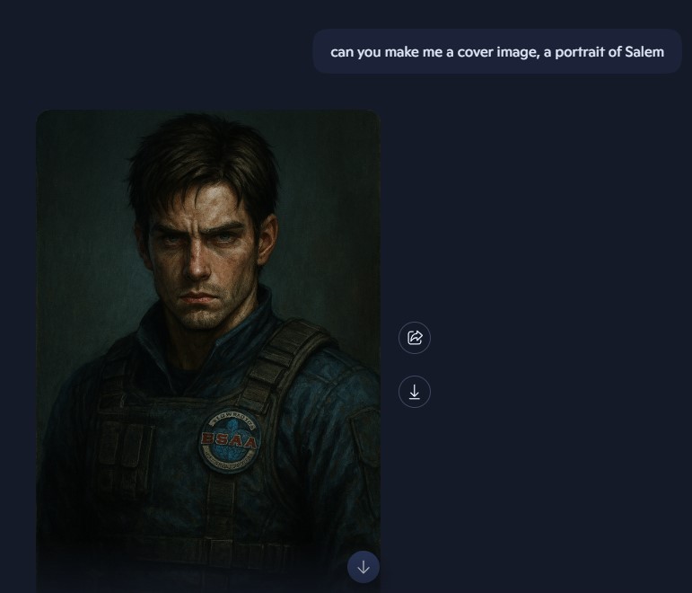 So here we have my all-around futuristic, or dystopian persona. I edited it to fit the Leon Kennedy chatbot I decided to try out for this.